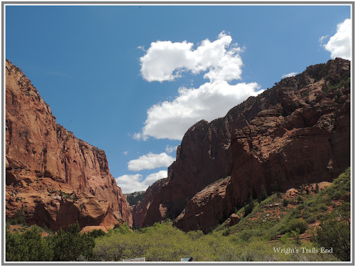 Our last day in Zion was sunny when we got out though the clouds were starting to appear by the time we got around to talking a hike on the Pa'rus Trail, which is the one trail pets are allow on. We walked to the Visitor Center and to the South Campground, which is the beginning of the 3.5 mile trail.